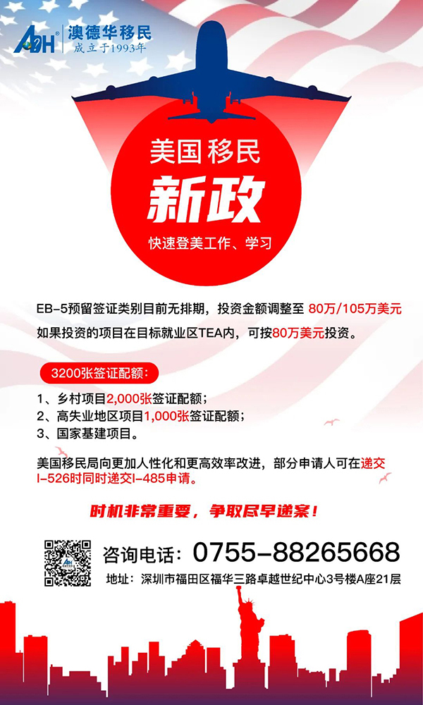 EB-5预留签证项目,允许满足一定条件的投资人在I-526申请递交的同时递交I-485身份调整,在递交I-485申请时,申请人还可申请旅行许可I-131和工作许可I-765,也就意味着递交申请后申请人可以安心在美国等待绿卡,即使排期也不用担心不能合法长居美国。