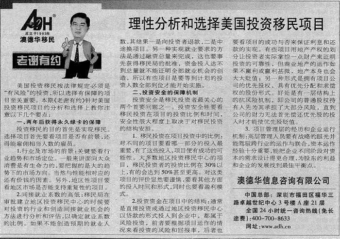 2011年7月28日《深圳商报》A15版-《理性分析和选择美国投资移民项目》