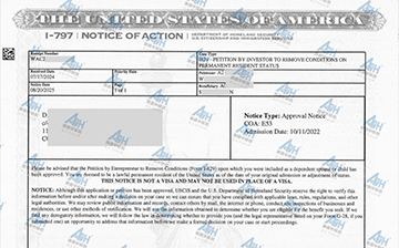 「成功案例」澳德华美国EB5客户的获批信及10年永久绿卡